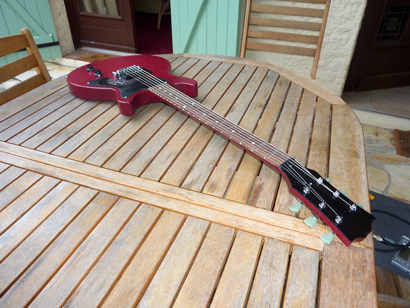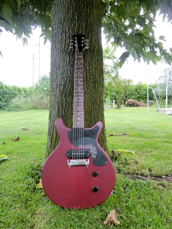 Donc une Junior DC que j'ai fabriquée de A à Z en 2012. Elle est équipée d'un P90 SP custom smockey Jr, un excellent micro boutique haut de gamme.