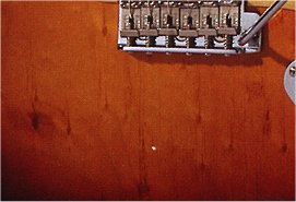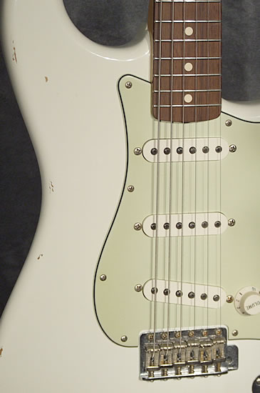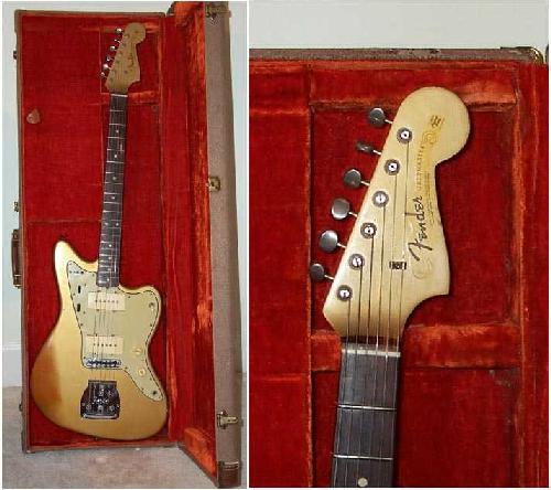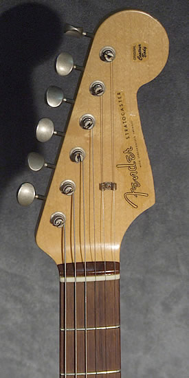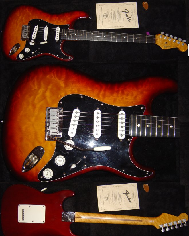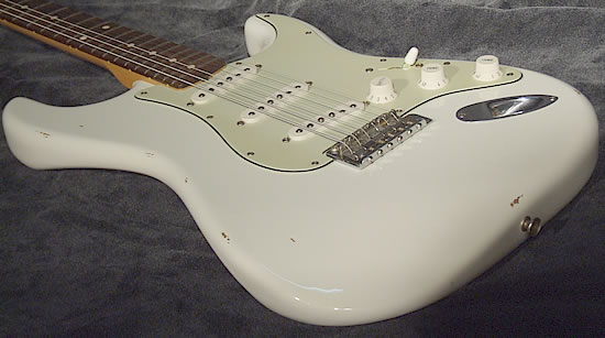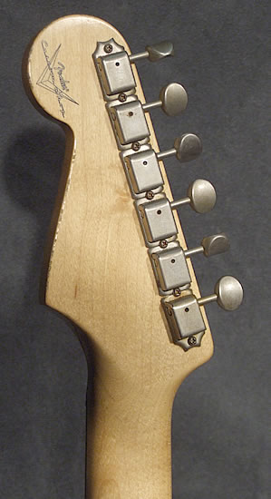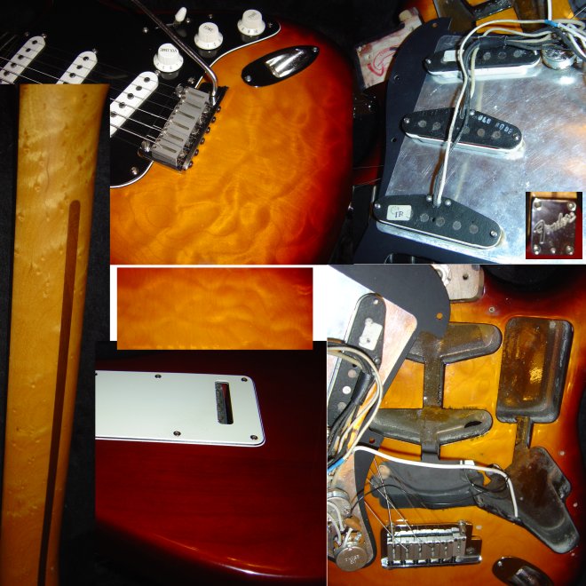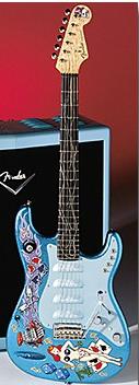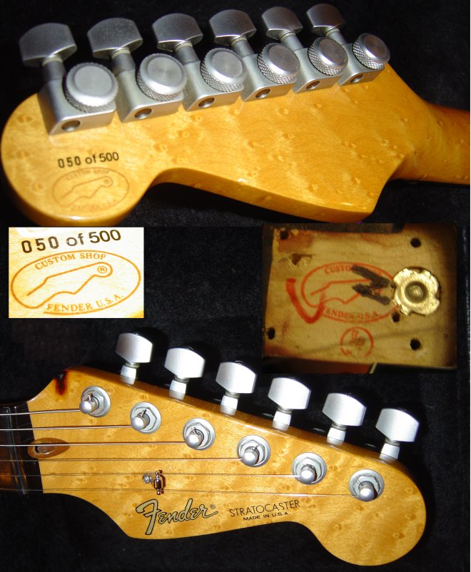 Remarks: Built as a collaboration between Titan Motorcycles and Fender, by Alan Hamel. It features a padded armrest, clutch lever tremolo, machined pickguard and custom hex bolt inlays. There's a 'matching motorcycle' as well, the Strat-o-Cruiser. Click here, here and here for pictures of that.