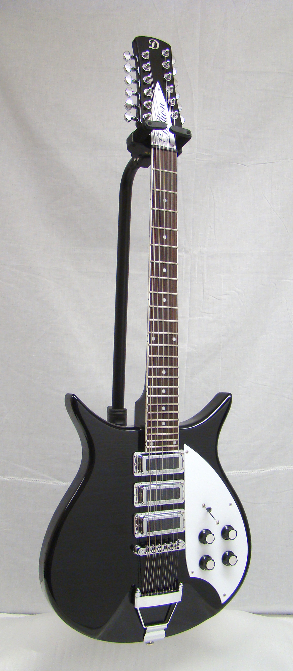 Bon, d'accord, il y a la bonne vieille Danelectro. Elle sonne super, et elle est bien jolie surtout en rouge. Mais j'ai déjà une 6, il faut changer un peu. Pas à dire, c'est bien du côté des Rickenbaker et de leurs copies que je vais regarder.