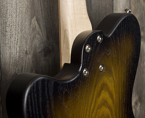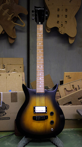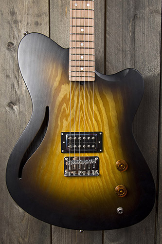 ^ Gamay Brut en finition sunburst, micro SP Custom Origin 57, corps aulne, manche érable, touche cormier. Simple et efficace pour pas cher !