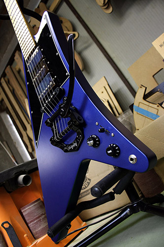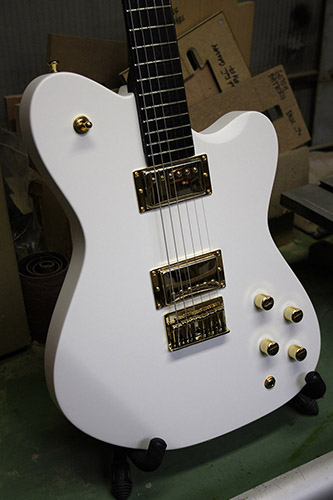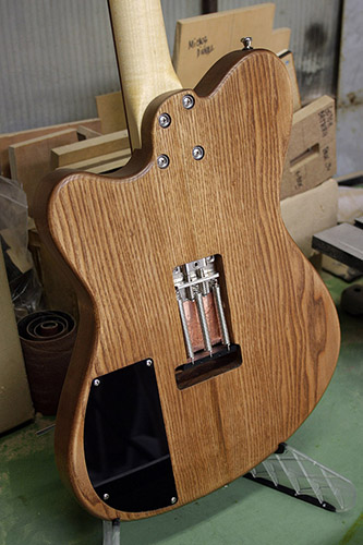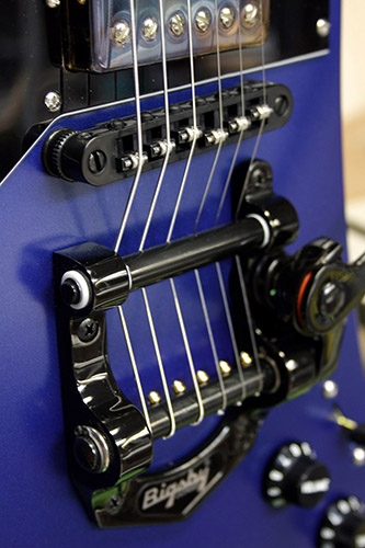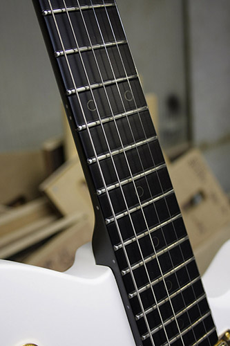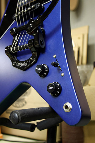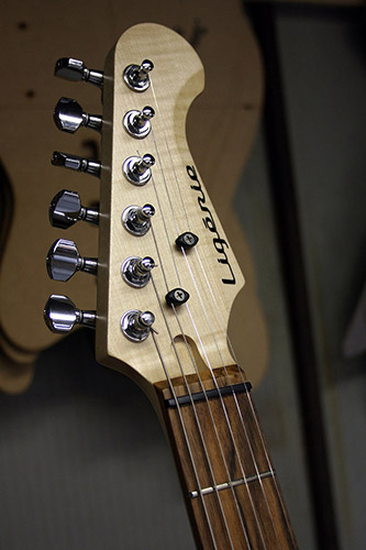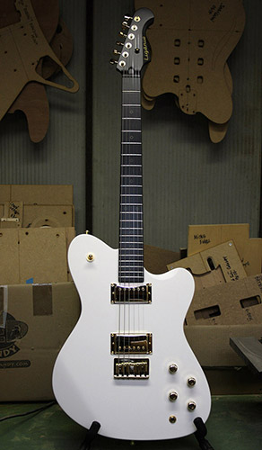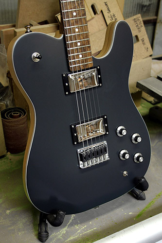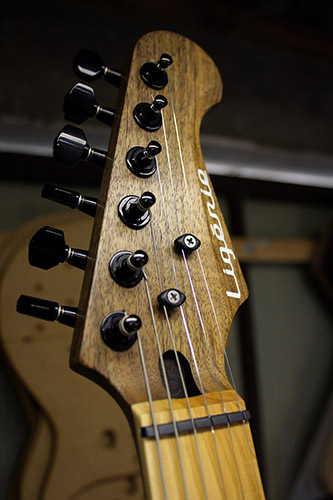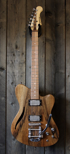 ^ Sauvignon Brut avec quelques options comme une belle table en noyer, un manche 3 pièces érable/noyer, une touche en poirier, bigsby et une paire de micros SP Custom Heat Crusher et Smokey 90 A3 cachés derrière une grille custom.