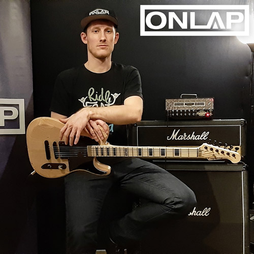 ^ Othello Brut signature "ONLAP". Un autre partenariat, avec Flo, guitariste du groupe parisien de metal alternatif ONLAP. Une guitare ultra légère (corps fin en frêne) et maniable, un seul micro EMG 81 pour le gros son, des grosses cordes Skull Strings (made in France) pour tenir l'accordage en C du garçon. Le petit plus : le logo du groupe gravé à la 12è case et les repères en ébène incrustés dans l'érable de la touche.