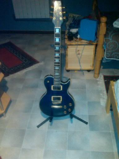 Bonsoir, une amie a une guitare chez elle, elle l'a récupéré de son frère. Il s'agit d'une Lespaul, seulement étant en déplacement elle ne peux pas me répondre pour le moment et je n'ai donc que cette photo, ou malheureusement on ne voit pas la tête.