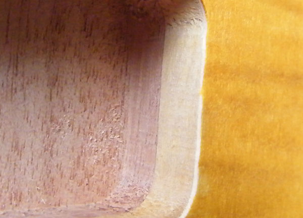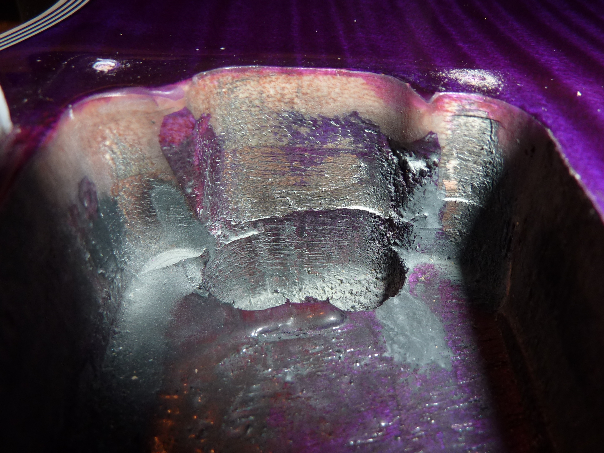 Bon je n'irai pas jusqu a la poncer . Mais je le ferai à l'intérieur des cavités pour mettre le bois à nu. Mais il me semble reconnaître les fibres de l'