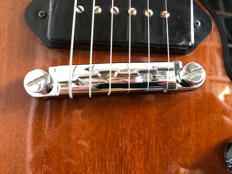 Les mecaniques sont pas d'origine, sa ressemble a du Grover sur la photo sa devrait être des Gibson Deluxe (bouton blanc). Le chevalet wraparound est correct (2001) mais il manque les 2 vis de réglage, les knobs noir j'ai un doute, il me semble que c'est Gibson Top Hat Knobs gold ou ambré ?