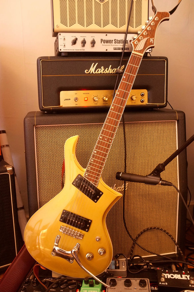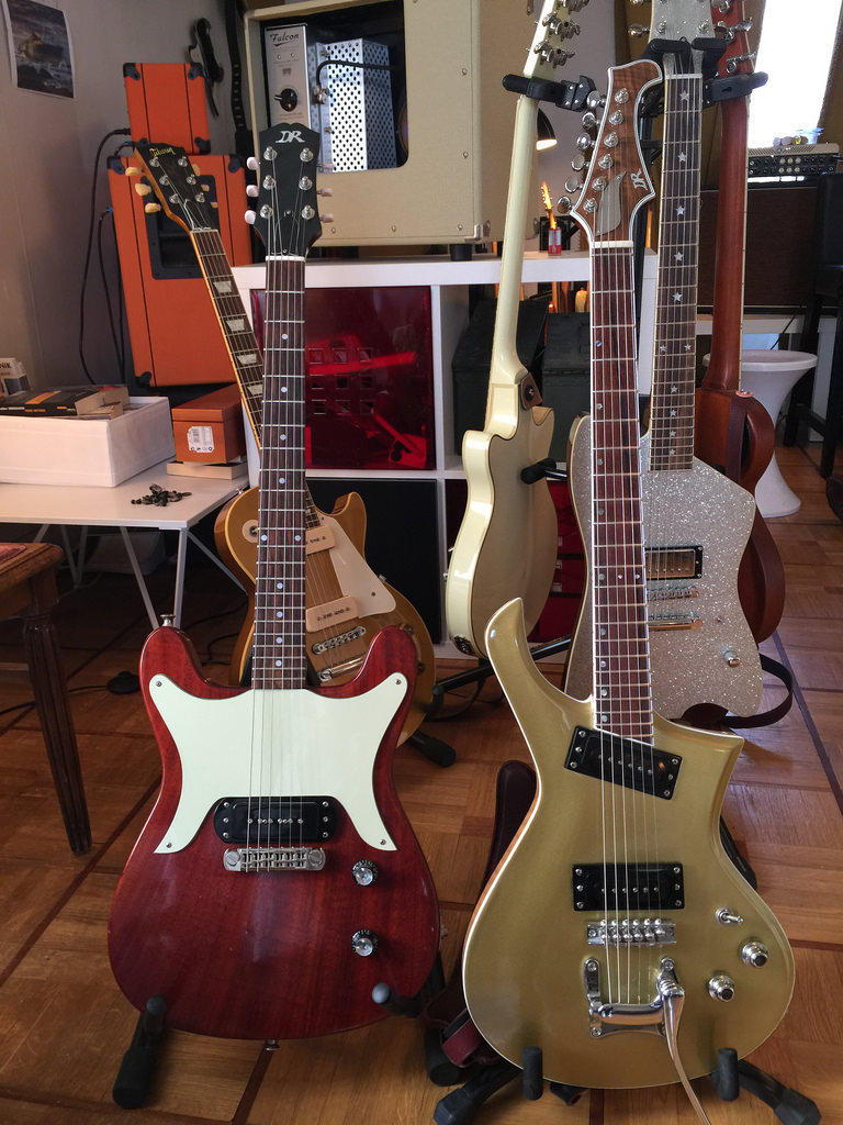 Comme tout le monde je fais aussi parfois ma fashion victim, en flashant sur du Fender ou Gibson Custom Shop. En général en neuf on tape dans des prix plus élevés qu'ici, tranquillement, pour du "pas tout à fait fait main".... Avec les Daguet, je trouve qu'on a le même plaisir des formes classiques, tendance "vintage", et on reste aussi dans le son vintage, mais avec beaucoup plus d'originalité parfois, ou des défauts des modèles initiaux complètement corrigés. Bref au final j'éprouve plus de plaisir avec mes Daguet, ou avec mes Le Pape, qu'avec mes R6-0-7.