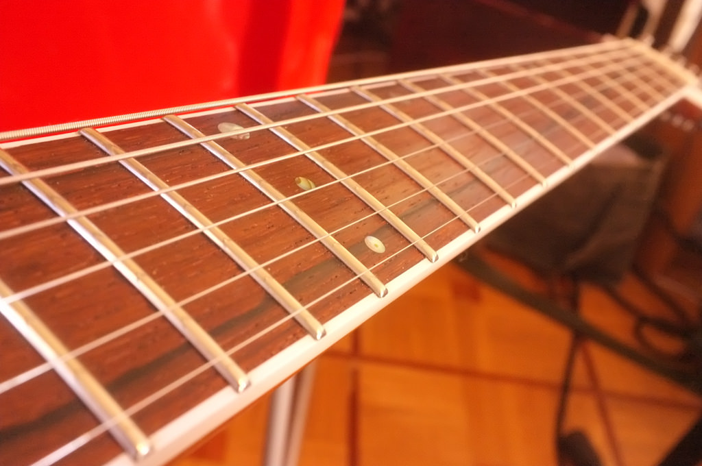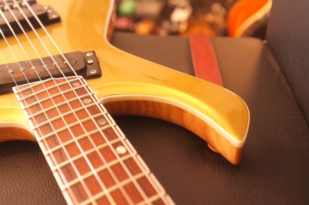 Outre les qualités de solidité et de son que confère un manche en plusieurs parties, j'ai toujours trouvé ça beau, et ce d'autant sur une guitare plus "classique" que "moderne". Le profil est assez stratoïdal (?) assez fin mais pas trop. On s'y fait en deux minutes.