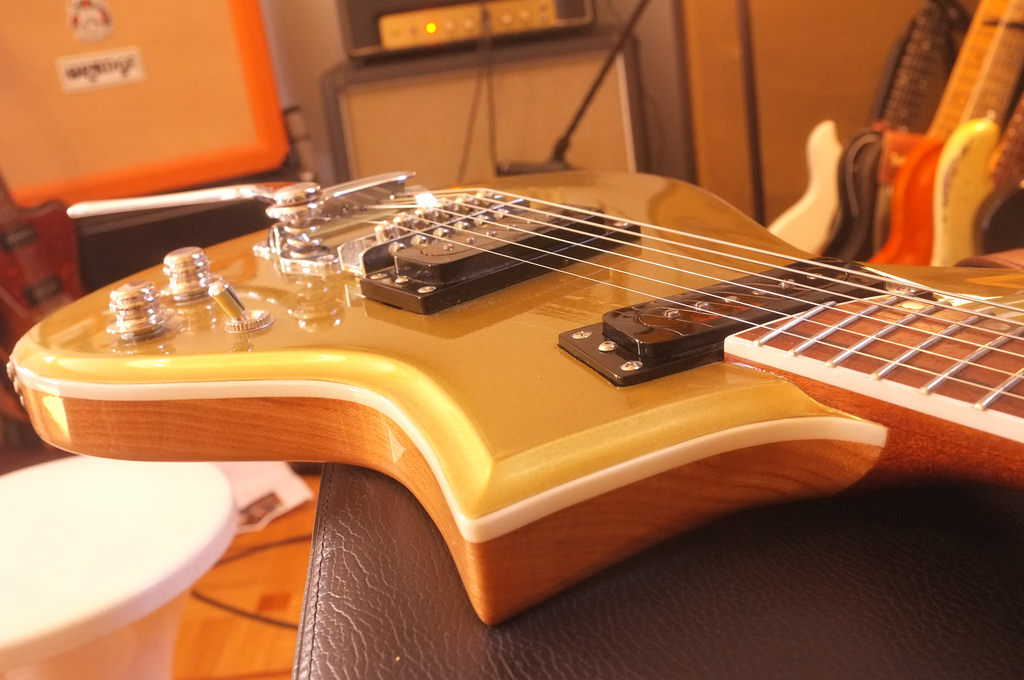 Donc la Dagrite SPQR, c'est une libre, très libre interprétation d'une Mosrite Le look est assez inhabituel, et pourtant c'est une forme qui pourrait être un grand classique.