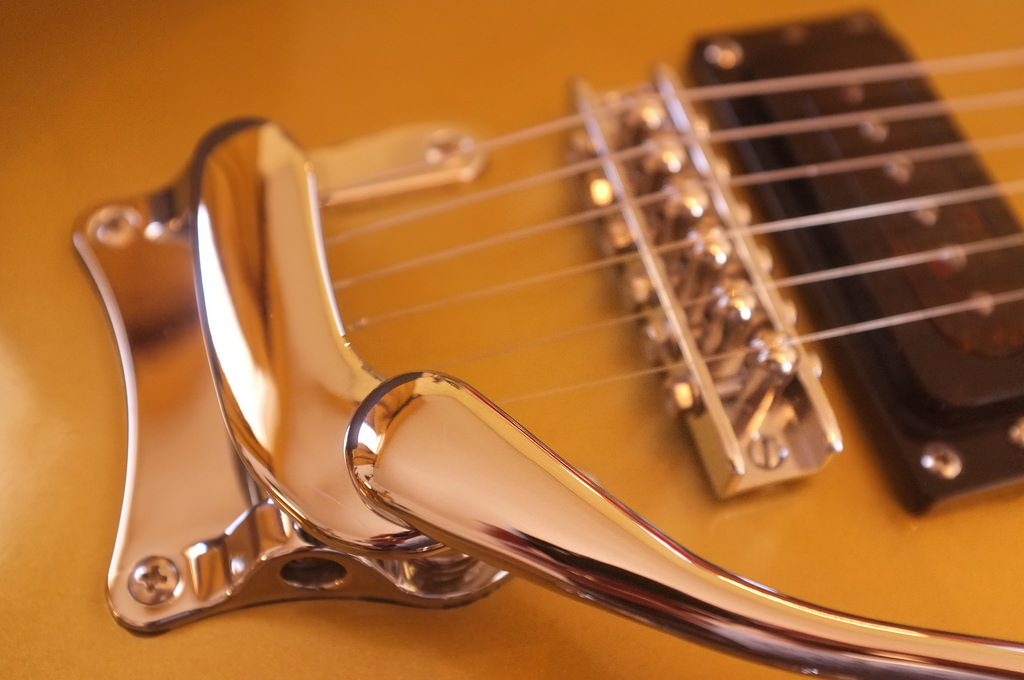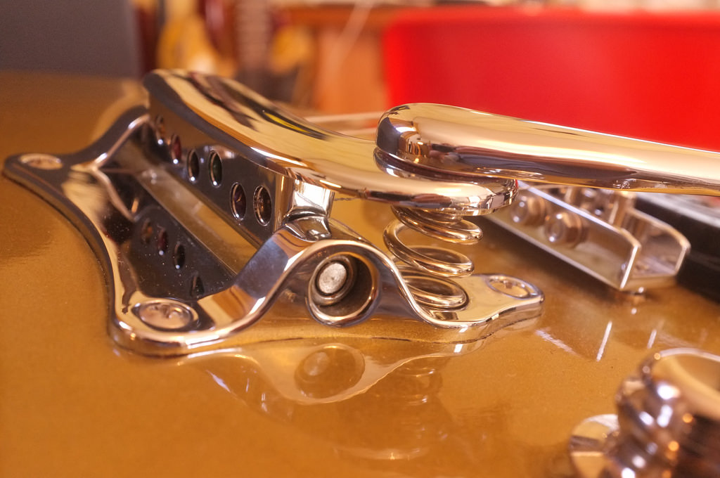 Je n'utilise pas beaucoup le vibrato, mais une belle pièce comme un Bigsby c'est beau, qu'on y touche ou pas. Ce modèle ci( Mosrite, Moseley? je ne sais plus), c'est la classe absolue: