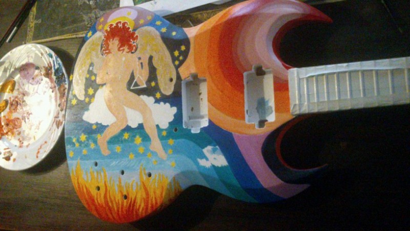 Le colis reçu, déjà le « Truc » John Doe s’impose à moi comme un ami massif, ça sent la qualité de fabrication, ça à la masse volumique du polonium, ou pas loin, et c’est juste beau à voir ! (fait presque chier de le monter tellement le cul est beau quoi !) vient ensuite la période bricolage, tu trifouilles, volent le copeau (sur une slim t’as le doigt léger …) quelques coups de ciseaux, tu coupes tu ponces pour faire passer le pépère dans le pickguard (à refaire du coup pour ma part parce que j’ai un peu oublié les arrondis !).