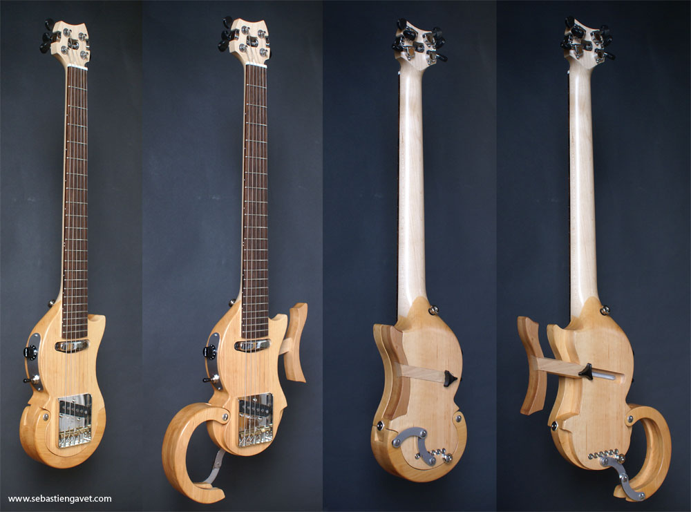 une petite guitare headless avec forme custom peu encombrante, et hop, tu as une toute petite guitare que tu emporte partout, pas de mendicité puisque qu'electrique et branchée a un casque