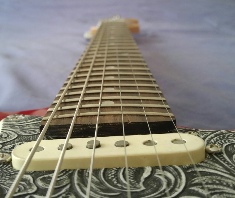 - éviter les chocs thermiques et/ou hygrométrique qui vont d'abord faire du mal à la finition, et surtout les atmosphères trop sèches prolongées qui vont faire se rétracter le bois durablement et plier/vriller le manche. Les atmosphères trop humides vont d'abord être préjudiciables à l'accastillage métallique et à l'électronique.