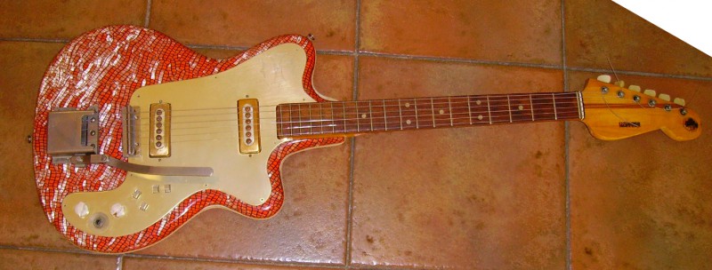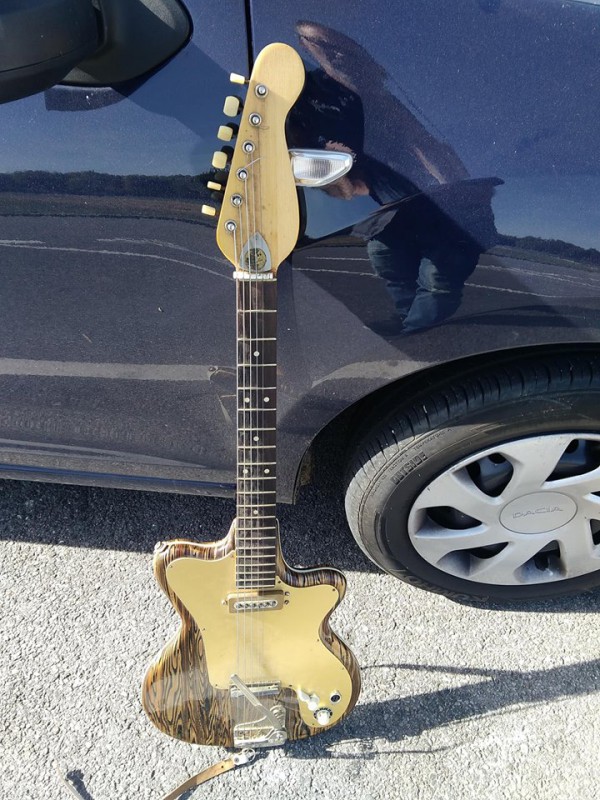 La photo a été faite avant d'achever la restauration. Le manche avait souffert (des cordes trop dures!) et j'ai dû le remplacer, puis j'ai enlevé l'horrible Jack pour remettre une fiche DIN. J'ai tout trouvé chez Musikkeller.com, y compris un micro d'époque (pas répertorié sur le site, mais avec une photo de la guitare ils m'ont trouvé ça très vite).