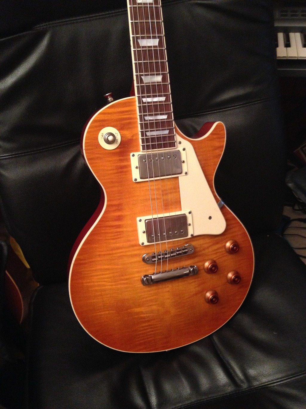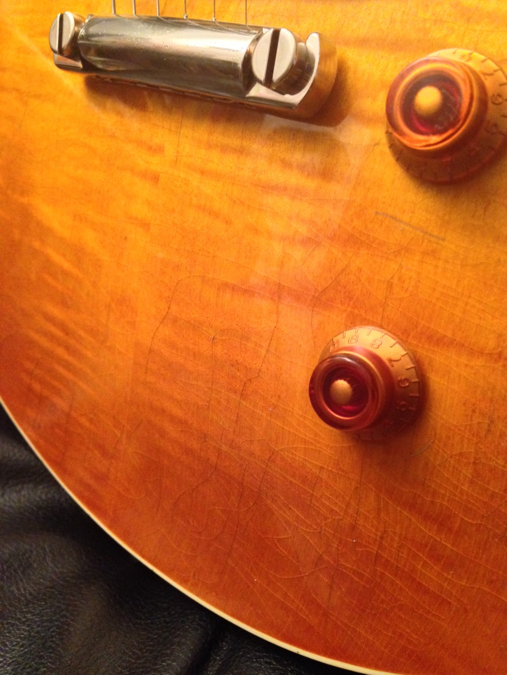 Alors, n'ayant jamais joué de LP du Custom Shop, mais possédant par ailleurs quelques Gibson (non LP) du CS, je dirais qu'en qualité de fabrication et de finitions, on n'est pas très loin, vraiment. Bon, quelques différences notables tout de même, pas de binding over frets, et corps en 2 parties.