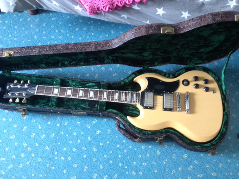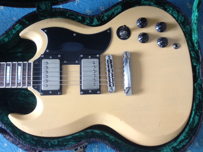 Je n’ai vu qu’elle en entrant dans le magasin, une des plus moches sûrement mais rien a faire, au milieu des centaines de grattes, j’accrochais toujours et encore sur cette pelle....je connais bien les SG mais cette Maybach, je ne pouvais plus l’a quitter du regard !