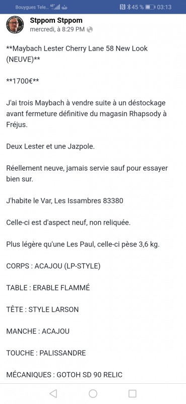 Jouant dessus depuis plusieurs j'ai fais un test avec une gibson les paul trad de 2009, micros classic 57 et bien la lester s'en ai sorti largement au dessus.