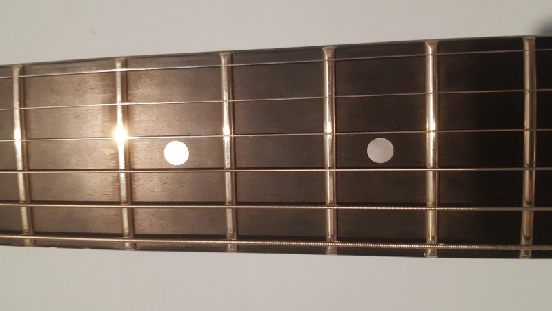Là je me suis décidé à faire appel à un luthier pour faire l'arrondi des frettes et je lui demanderais ce qu'il pense de cette guitare.