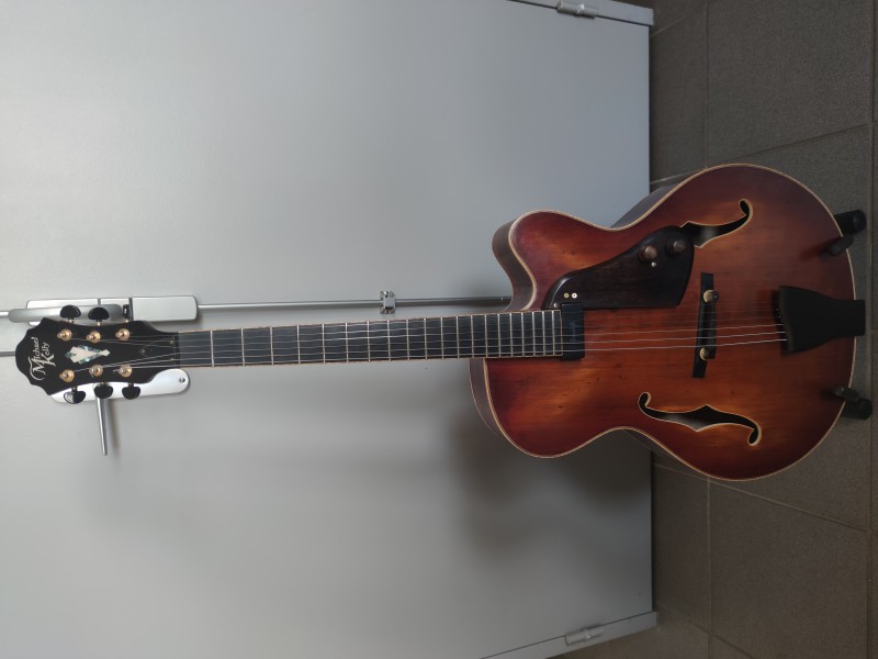 Je vous présente ma nouvelle copine, une Michael Kelly nostalgia heirloom jazz archtop dont le micro d'origine a été remplacé par un Benedetto s6