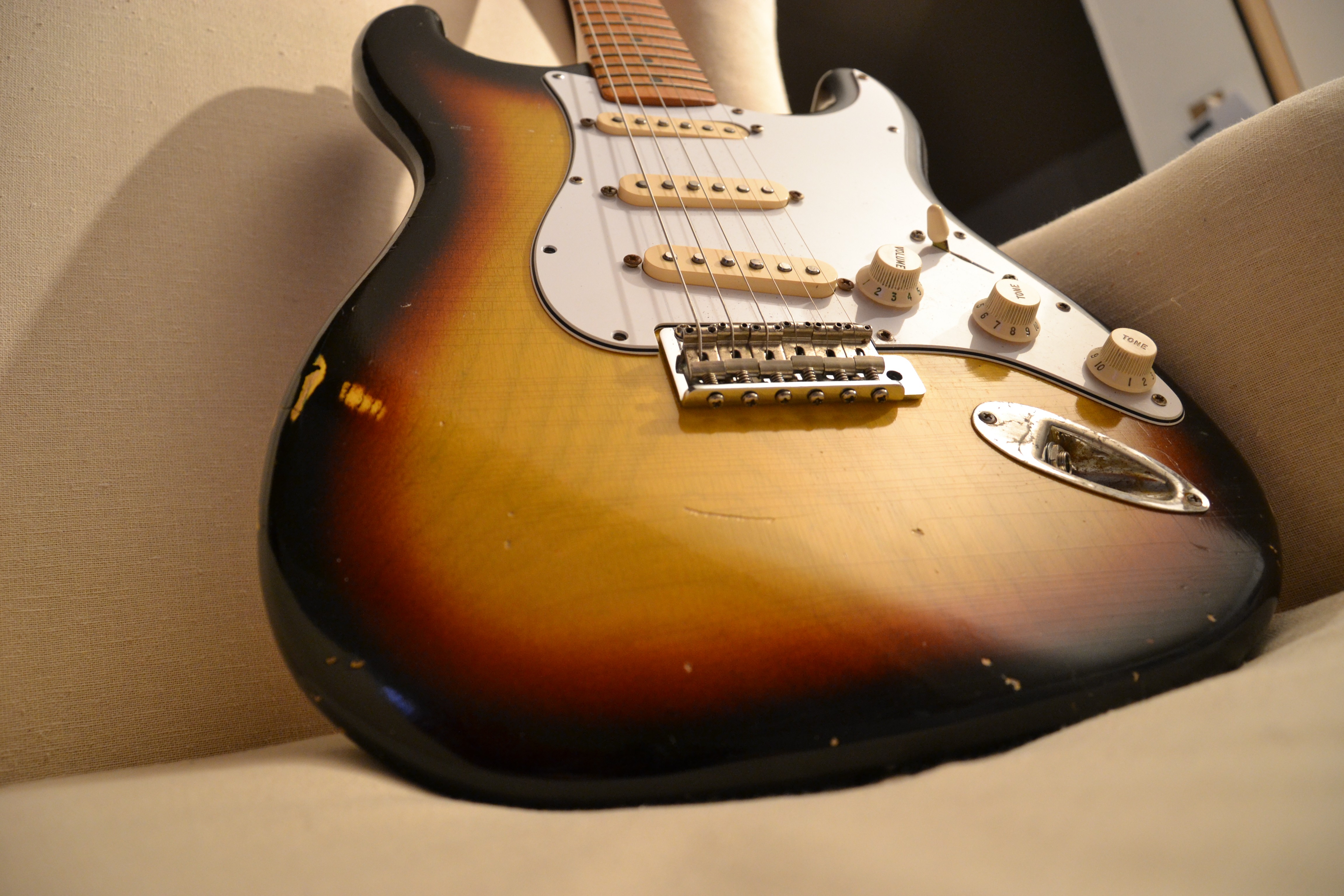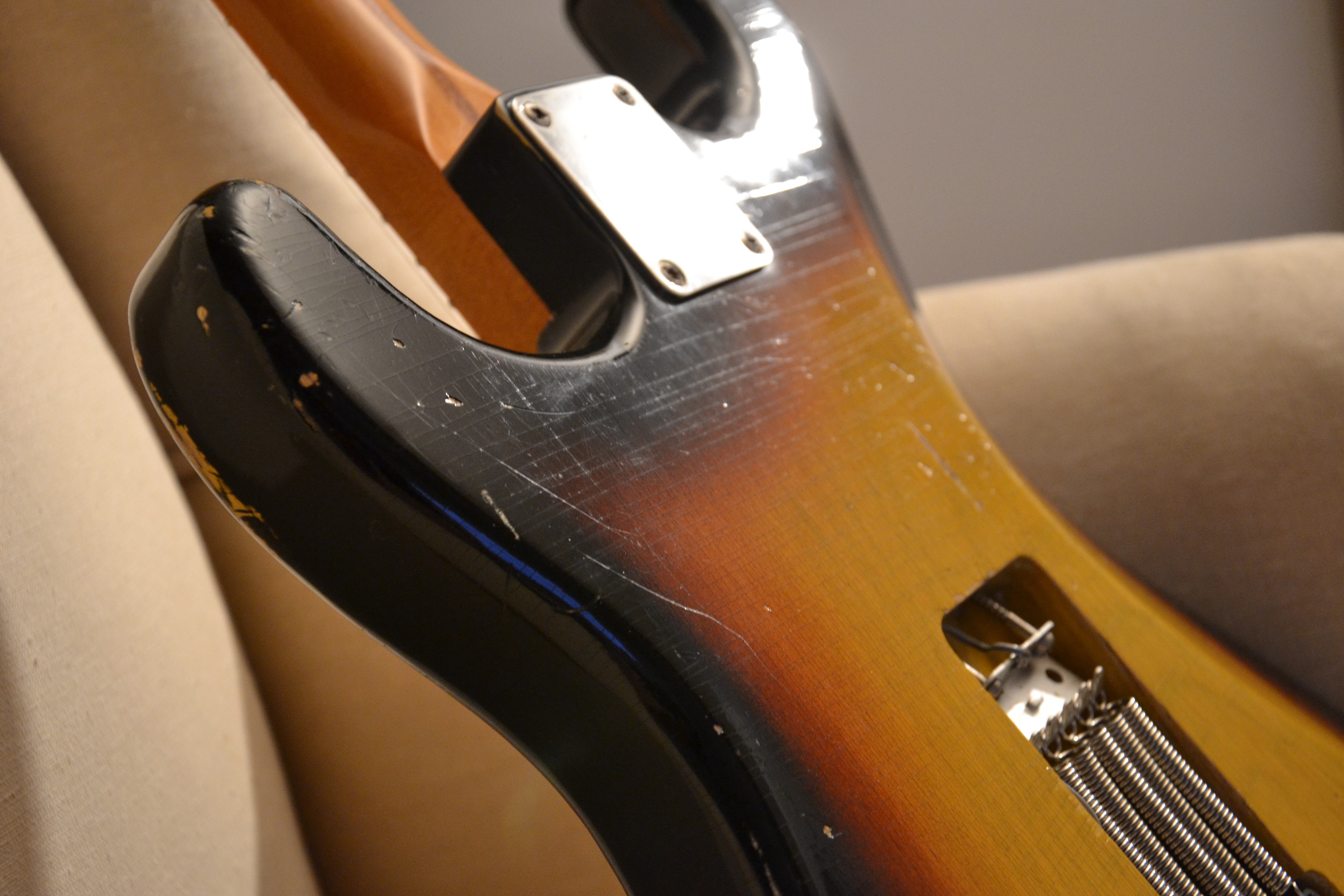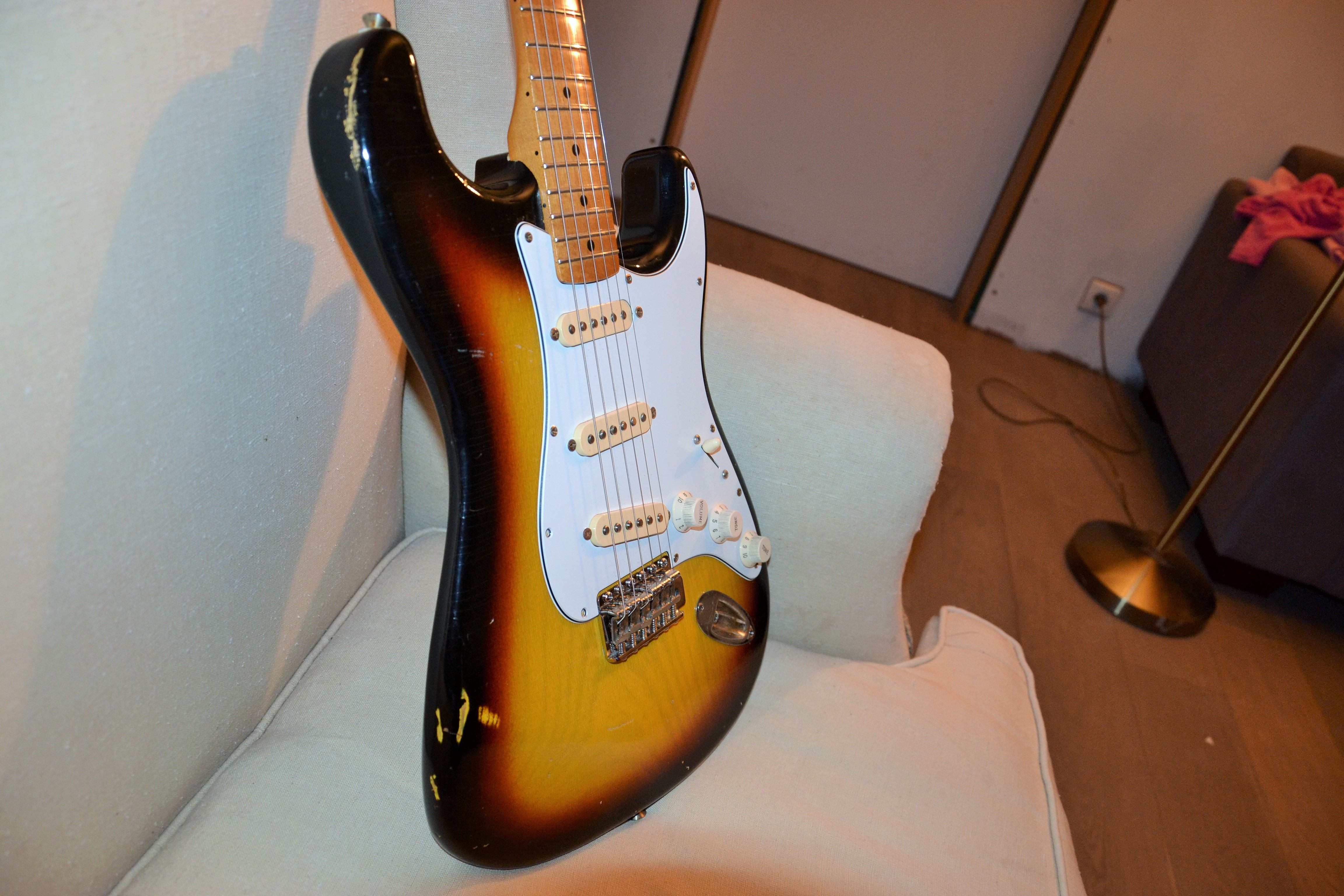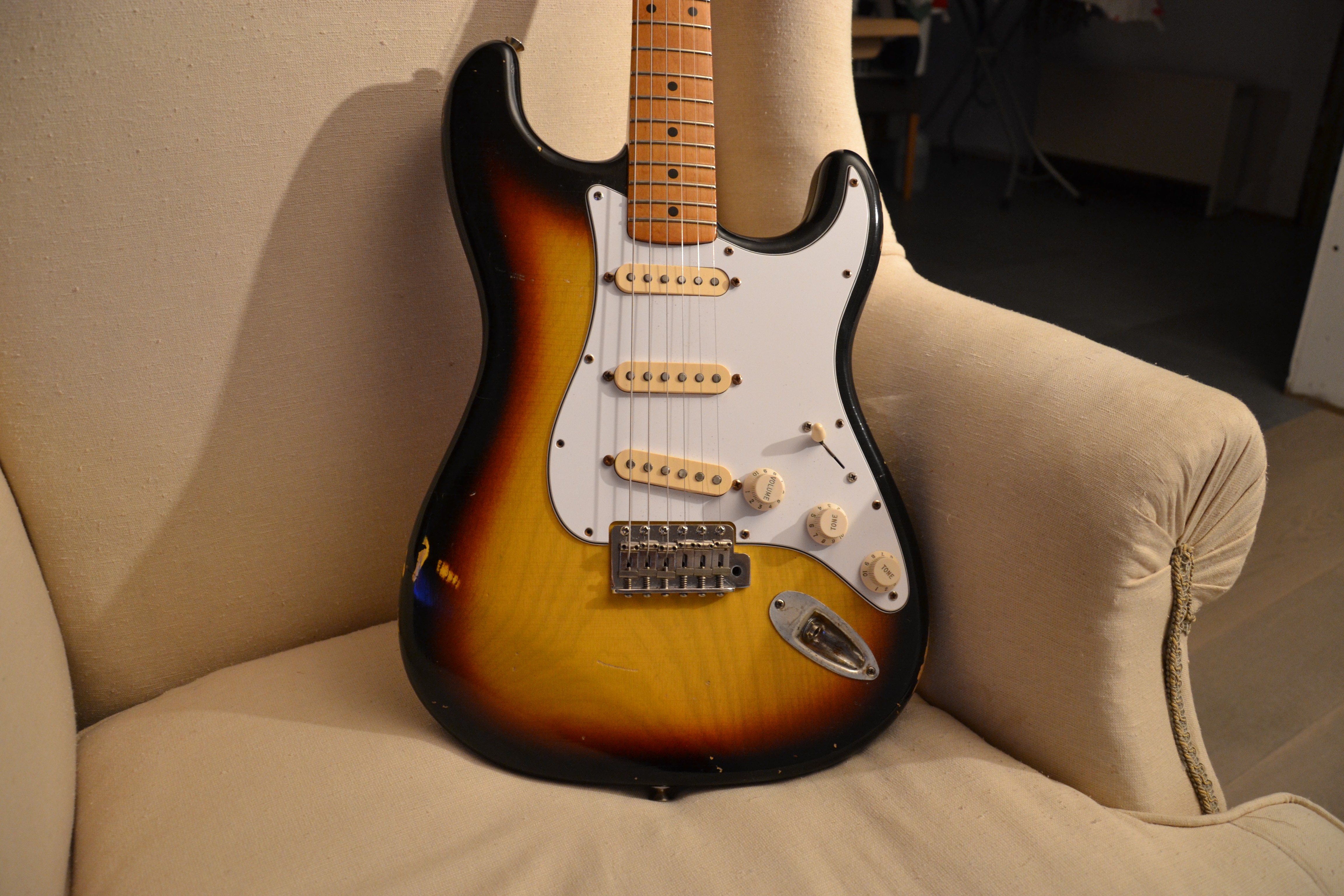 Me reste à changer les cache micro et les knobs (et peut être le pickguard par un 1 pli ... à voir). J'ai abandonné (momentanément) de changer le manche ... on verra plus tard.