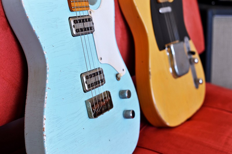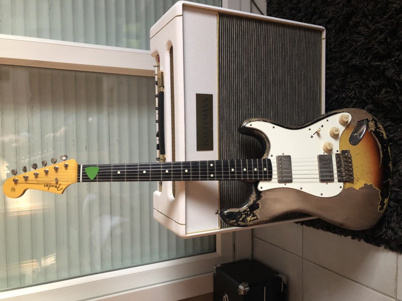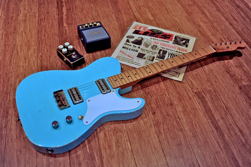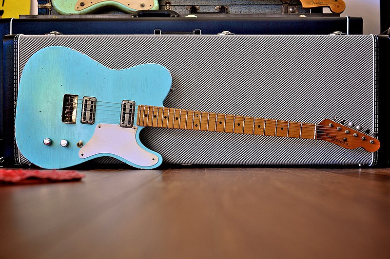 MJT/USACG m'ont chacun prévenu que ca prendrait un siècle. USACG m'a tenu au courant à chaque étape de la construction du corps à renfort de photos, Ils ont commis une erreur et l'ont corrigée avec brio et excuses. MJT a ensuite pris le relais, peint, verni et déglingué le finish avec délicatesse pour matcher ma requête au mieux. J'ai recu le beau bébé bien avant la date prévue (et donc j'insiste bien lourdement, avant celui de Guitarmill, alors que la commande a été passée après) et le manche matchait à 100%. La facture était aussi plus légère et bonus, Mark m'a même demandé si j'étais toujours satisfait de mes MJT. (Le pluriel ici n'est pas une erreur. Mark, ce héros, se souvenait de ma Jazzmeister.)