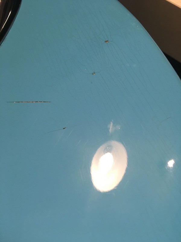 Guitarmill avec sa grosse réputation a mis plus de temps et a commis plusieurs erreurs: Lake Placid Blue au lieu de Sherwood Green, percage pour hardtail vintage au lieu du moderne, un trou de trop pour les potards et aux mauvaises dimensions, et aucune option pour le couvercle de l'électronique. Il a aussi fallu que je ponce le manche pour le rentrer dans le neck pocket. J'ai aussi commandé le corps Guitarmill avant celui d'USACG et je l'ai recu après. A aucun moment il ne m'a été proposé de remboursement, de remplacement ou quoique ce soit pour me consoler.