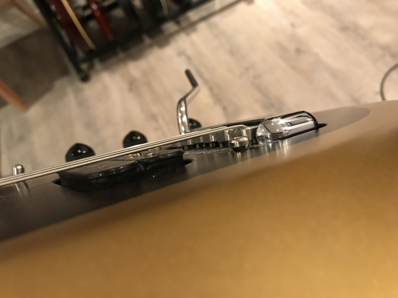 Autre exemple, j'ai une vieille James trussart avec le floyd sans défonce mais flottant, juste assez pour avoir 1 ton 1/2 sur le G, etc et ce parallèle à la table, bref il fait de beaux "bzzooiiinnnggg" etc MAIS, parfois si je veux toucher un truc comme les micros, je démonte le floyd avec les cordes sans les détendre (c'est cool les gars ça marche très très bien et quand on remet le floyd hop tout est encore accordés) sauf que parfois je remet le floyd, sans toucher à rien et... ça vibre plus bien c'est dur...