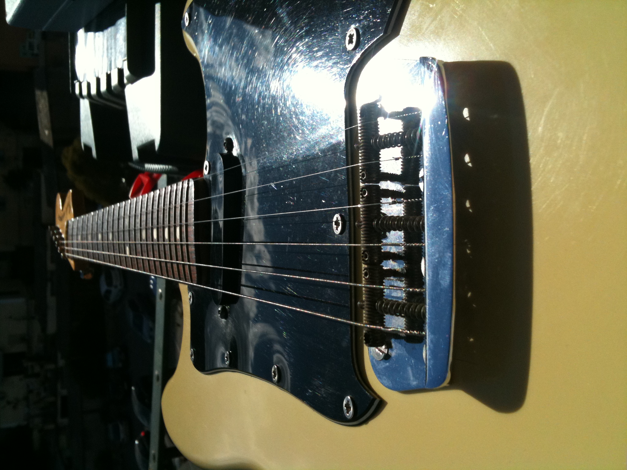 Belle ta mustang, faut que je post ma music master, physiquement, à part la vibrato, elle ressemble énormément à ta mustang (la mienne est montée en duo sonic avec un SD antiquity en chevalet