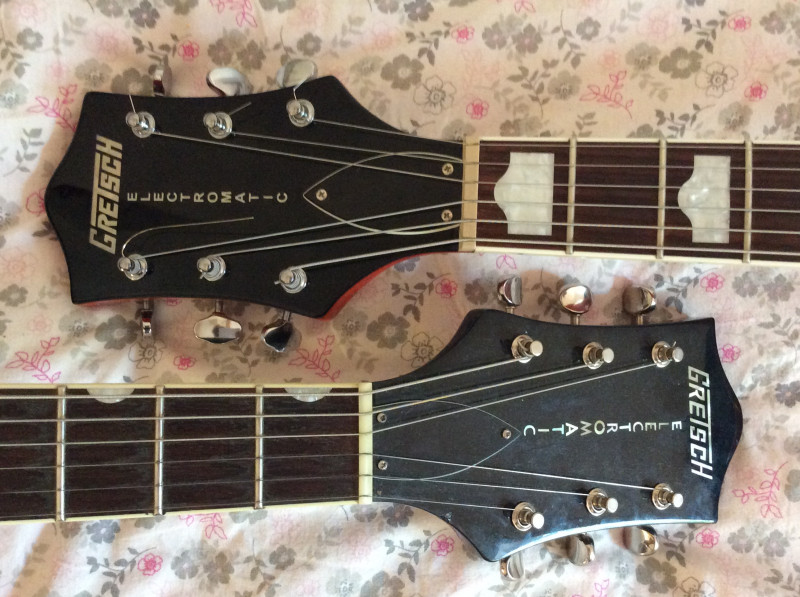 Je viens de revendre pour un prix qui par contre me fait encore mal au c*l ma strat, un superbe instrument, le but étant initialement d'attraper une 61XX suite à mon diagnostique validé de ma Gretschomania. Mais la vie est n'est pas un menu Sushi et le peu de sagesse qu'il me reste m'invite plutot a renflouer les caisse. Rassurez-vous, mon âme damnée a quand même eu gain de cause et je me console sur, donc, cette Electromatic.