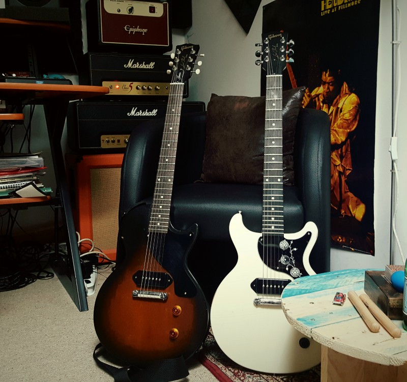 Les miennes... LP junior Sunburst corps en 1 morceau de 2008 et LP junior Nashville de 2007.