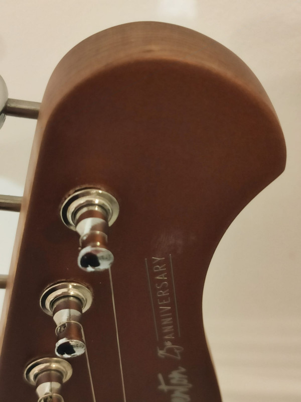 -les frettes medium jumbo sont vraiment GROSSES et assez hors sujet sur un modèle qui reprend une forme aussi vintage. J'aime beaucoup les grosses frettes qui permettent plein de choses comme des gros bends, mais là, je trouve ça trop énorme.