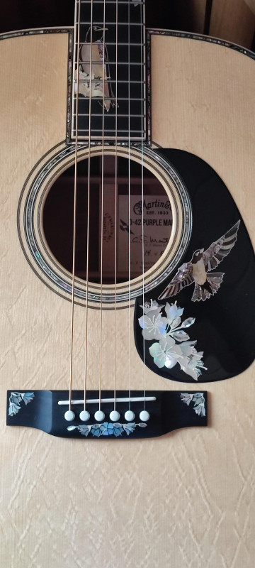MARTIN D42 - Franck CHEVAL OM42 Rio et JUMBO CUSTOM et James ART Le petit Prince - Simon BOUR J200 - McPherson MG 4.5 Ébène de Macassar - Fender Telecaster plus - FURCH Red Deluxe Gc Lc et GNc 4-SR Nylon - Olav LOEF Humbla
