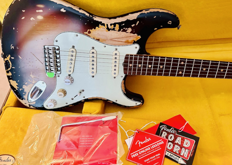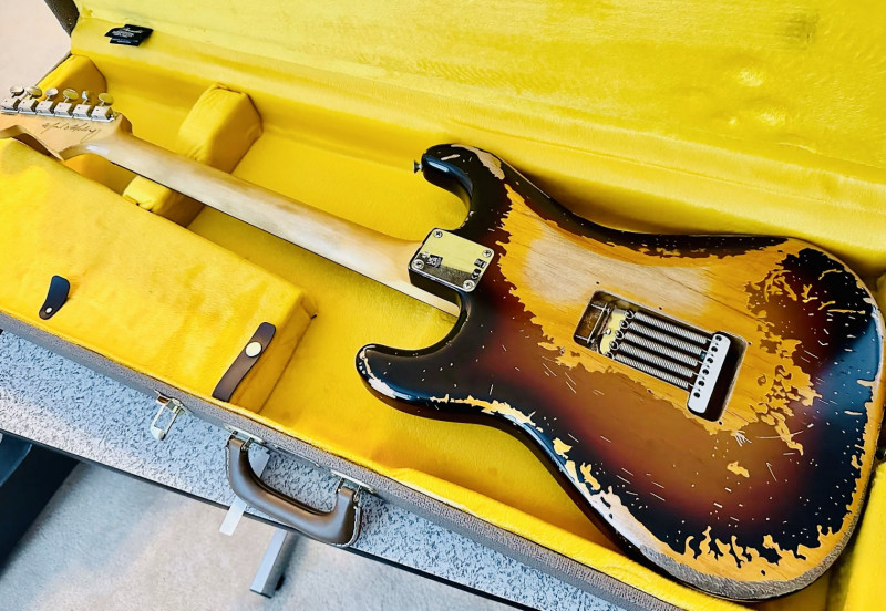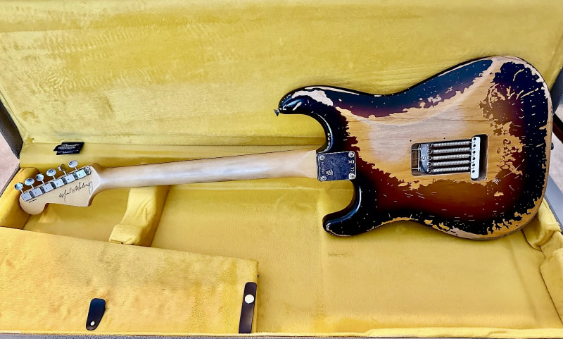 Le sillet qui fait cheap, et à la limite les pontets qui dénature l’aspect relic, qui lui est superbement réalisé, au même niveau qu’une Rory Gallagher ou d’une Michael Landau