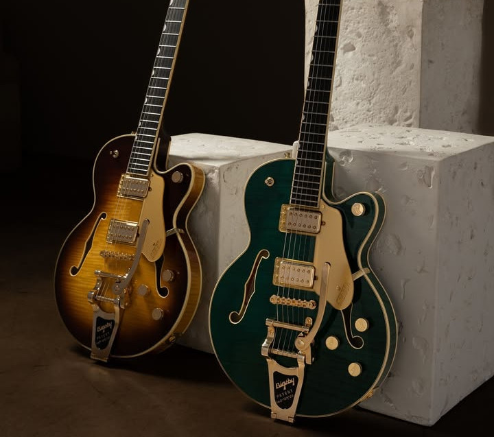 Guitariste.com Admin #1 Publié par Guitariste.com le 12 Mar 2026, 09:00 Les Gretsch Broadkaster LX Figured Center Block with String-Thru Bigsby® and Gold Hardware reprennent le design Broadkaster à un ou deux pans coupés plus profonds et leur ajoute un corps en érable flammé. Lire l'article : https://www.guitariste.com/art(...).html