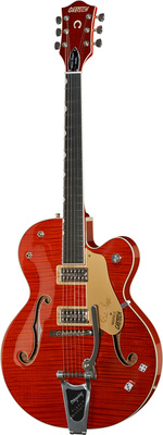 E-Guitar, laminated Maple Body,3-pc Maple Neck with Ebony Fretboard, 22 Frets, 2 HighSensitive FilterTron Pickups, Bigsby B6G Tremolo, GoldHardware, Color Orange Stain, incl.Case