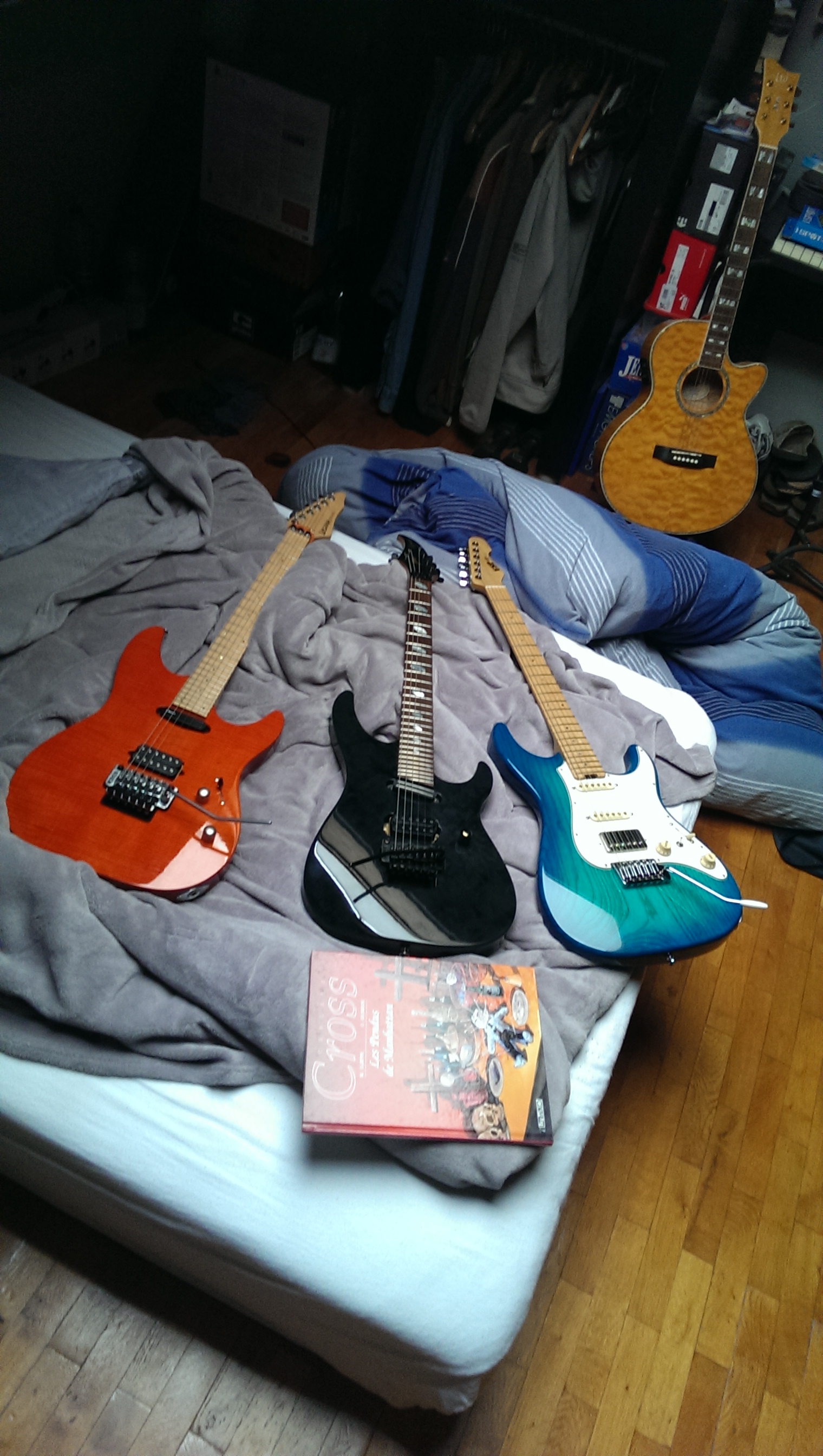 C'est marrant mais, quand je vois ta collec', j'ai reconnu la AT100 je crois. J'avais vu Andy Timmons à l'Ef2m et le gars, qui est une de mes références, ne joue quasi que sur son AT100 qui a un son formidable (ou il en tire des sons comme ça) et il a joué ce jour là tout son set avec cette seule gratte, comme quoi..Il est connu pour en jouer une deuxième en acajou touche palissandre et enfin une Télé pour les trucs plus country mais que j'aime moins. C'est un peu comme Erci Johnson, une autre de mes idoles, il en oue quelques unes, mais que du classique dont sa strat et en tire des sons fabuleux. Je dis pas avoir fait le tour de la queston ou des guitares, mais je pense qu'avec une ou deux en fait t'as assez. Mais bon, faites vous pliasir les gars, y'a pas de mal. Surtout que les grattes de qualité, si t'achètes d'occase, se revendent ou s'échangent sans perte.