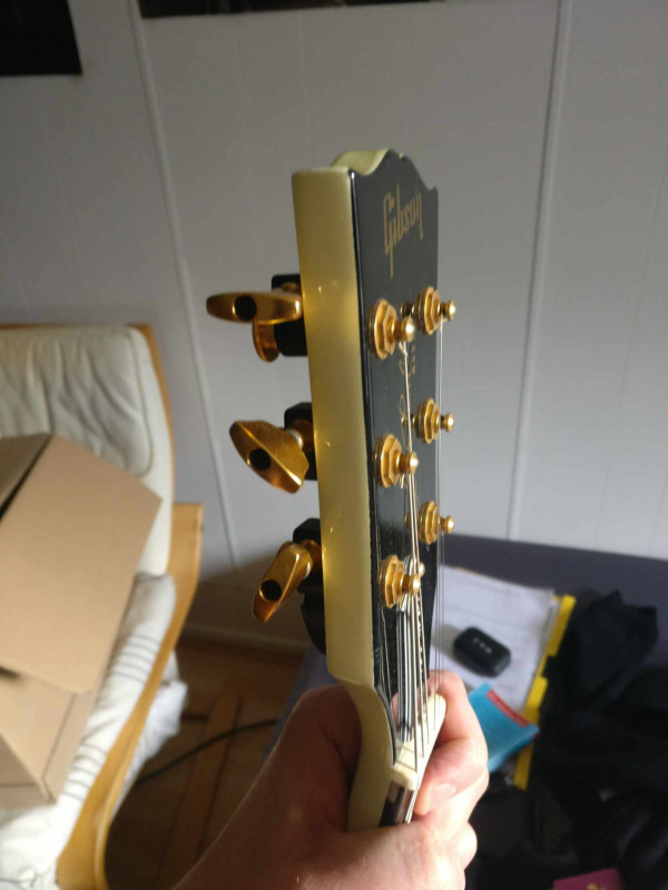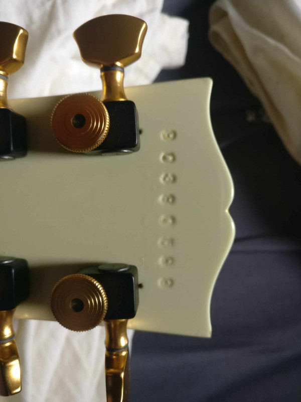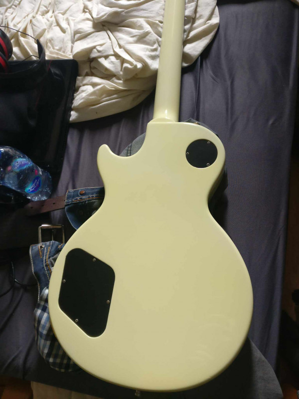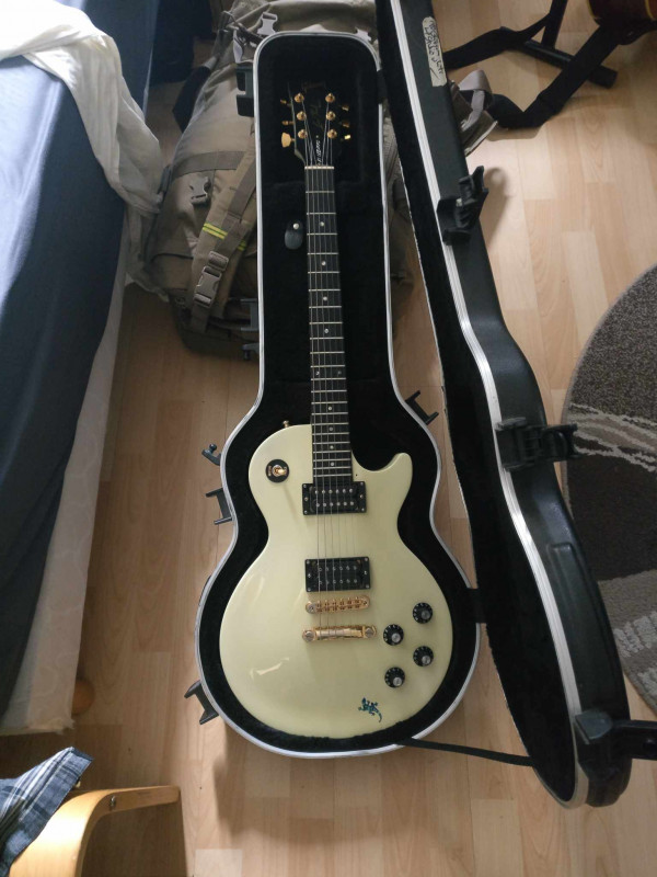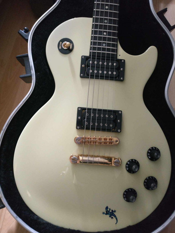 Voulant retrouvé le son d'une LP custom sans y remettre le prix, j'ai décidé d'acheter sur reverb une studio des 90's qui sont réputées pour avoir un très bon son ainsi qu'une touche ébène pour les modèles alpine white.