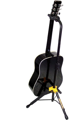 - Stands au sol dont la guitare repose uniquement sur le bas de sa caisse.
