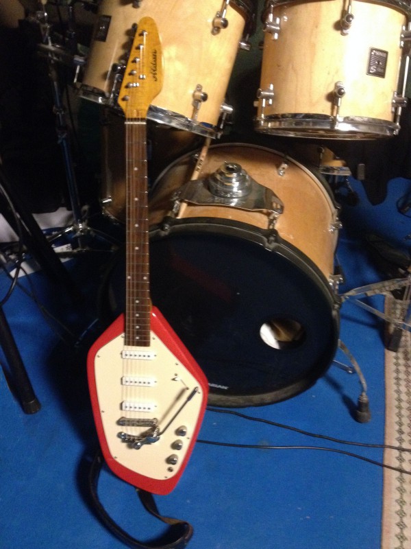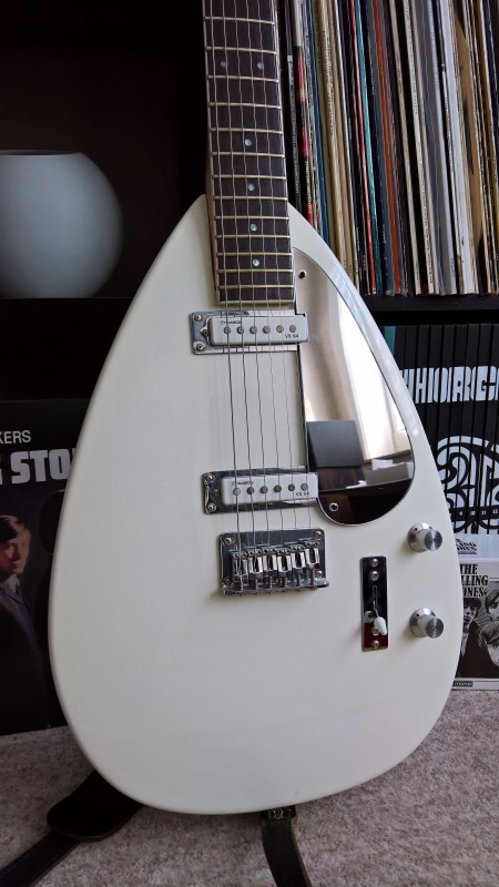 Nouveau pickguard chromé pour remplacer l'affreux noir d'origine (qui n'était même pas bien taillé en plus); j'ai dû travailler sur les encoches micros mais je suis très content du résultat final!