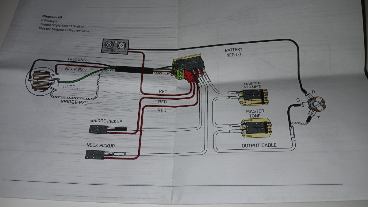 Pour commencer j'ai un soucis sur le schéma de montage de mon nouveau EMG GTV. Ce n'est pas un problème de câble ou d'ampli car tout fonctionnait avec mes micros précédent (micro Jackson zébra passif).