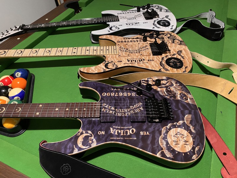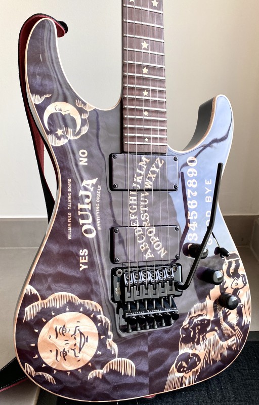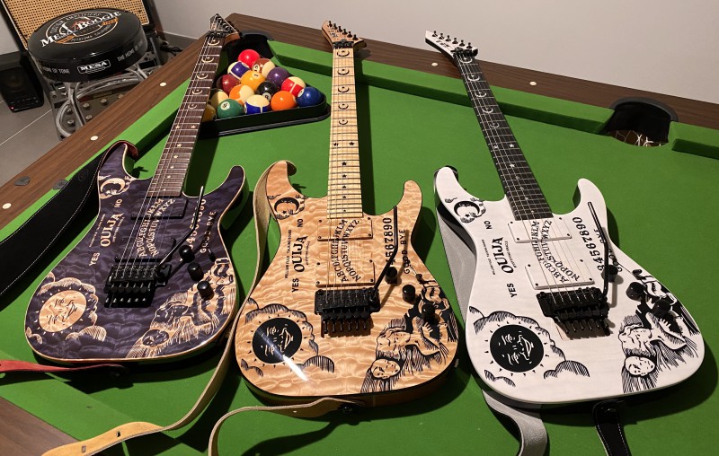 3- avoir uniquement les types de sons que j’aimais dans les anciennes : avec les sélections des micros, touche et bois qu’on met : emg, evo, satchur8, sustainiac, aulne, acajou, erable, bubinga, palissandre, ébène etc...