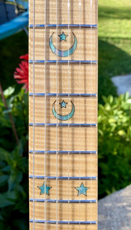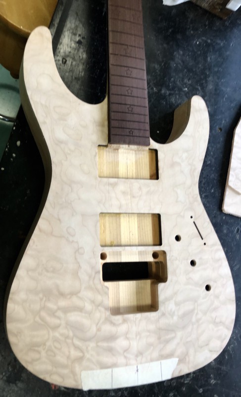 Par contre ayant eu beaucoup de guitares je sais pourquoi j’ai pris les spec 3 pièces : parmis toutes ces guitares différentes, j’ai été le plus à l’aise en tenue, en son, en feeling sur une kh. Et donc j’ai reproduit une kh avec ses spec dont le manche 3 pièces traversant.