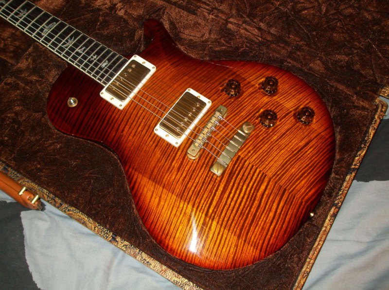 C'est vrai que cela ressemble au violin amber burst mais c'est peut être la même couleur qui a simplement changer de nom, le nom complet est black gold wrap burst, mais les bords du corps sont un peu plus rougeâtre translucide que le violin amber il me semble, après chaque finish PRS étant très artisanale et directement teinté sur la table...