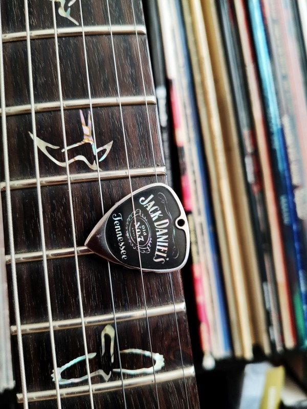 Ceci dit: quelle gratte! Je ne vais rien apprendre aux proprios de telles merveilles, mais la réputation est AMPLEMENT méritée: elle tombe tout de suite parfaitement en main, le manche est un délice (j'avais peur d'un manche trop mince mais non, ce standard a pile la bonne épaisseur pour moi). Le palissandre de la touche pourrait presque passer pour de l'ébène tellement il est foncé