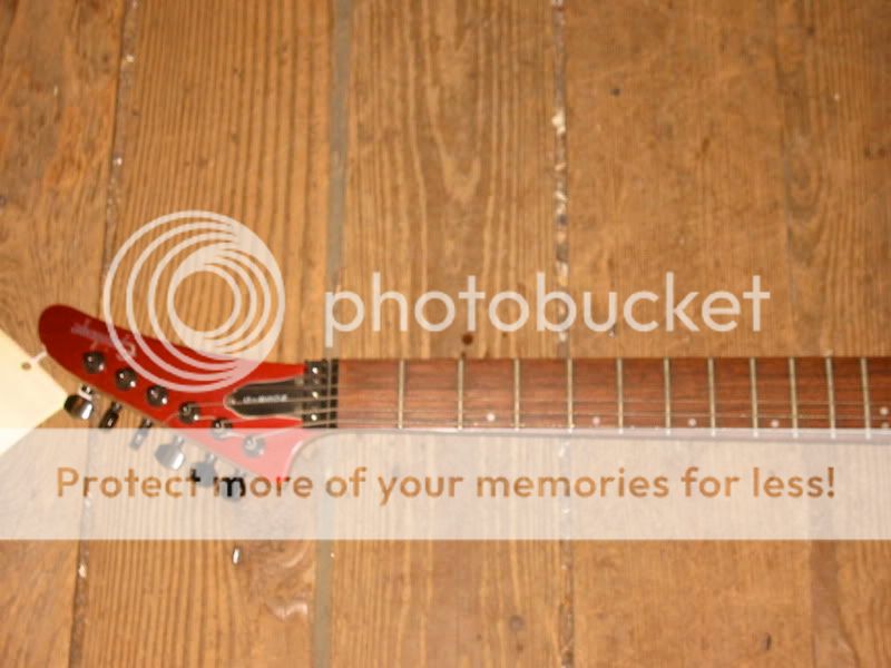 Comme on peut le voir sur la photo j'ai viré le Floyd, cette gratte possède 2 potars ( Volume et tonalité ) et un sélecteur 5 positions et donc 3 micros dont 2 simple et un double. Le numéro de série est sur le derrière de la tête mais sur un autocollant, ce qui fait qu'aujourd'hui il en manque un bon morceau et il n'est donc plus lisible ... La couleur est un noir très largement pailleté.