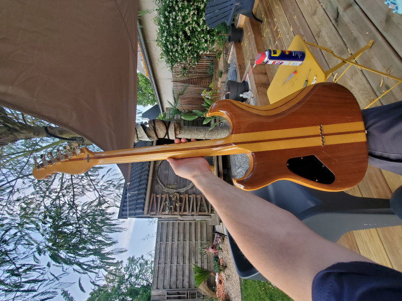 Vous pouvez constater que c'est une guitare pas comme les autres, avec un travail plutôt intéressant dessus.