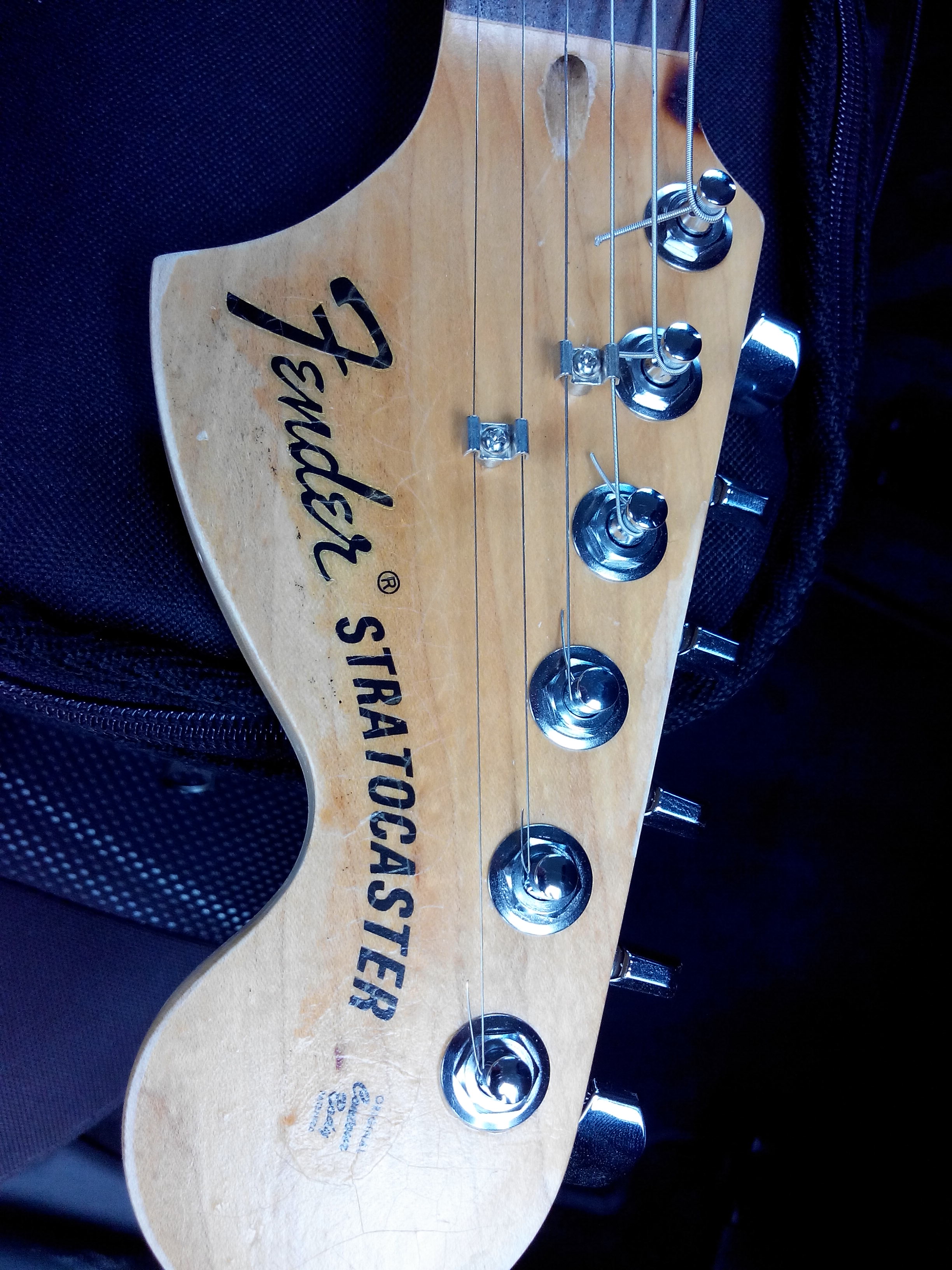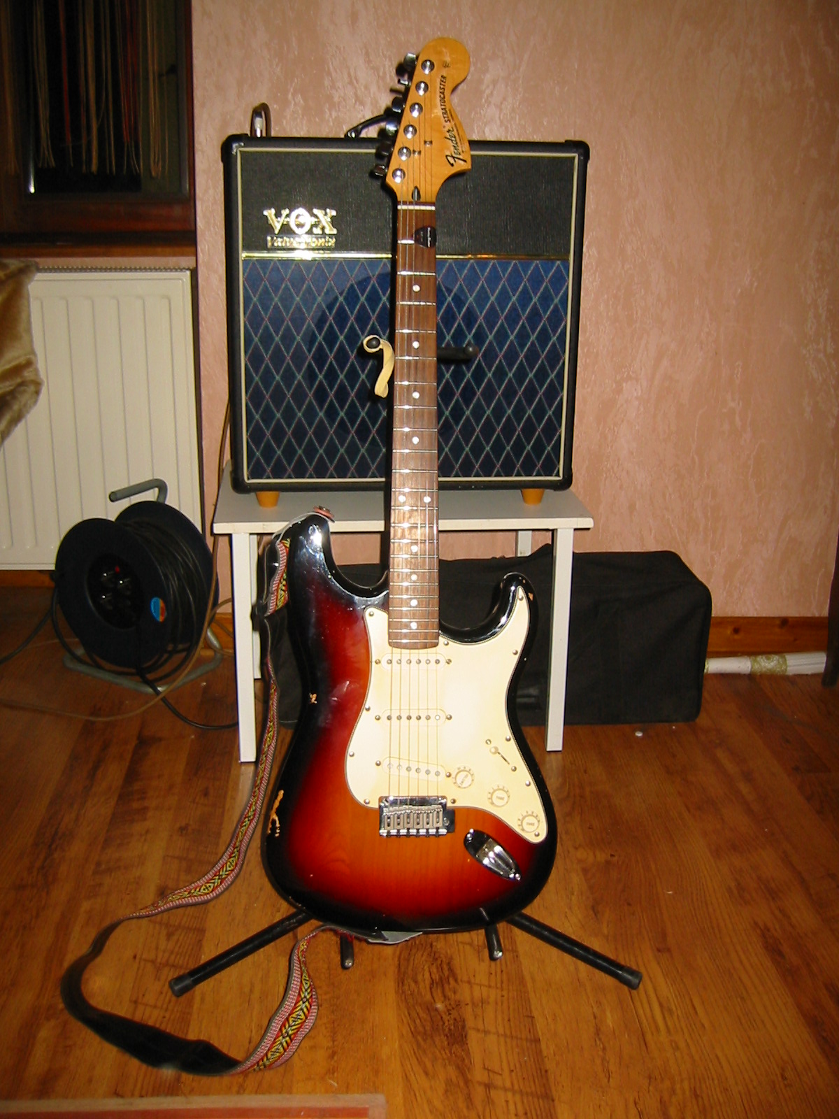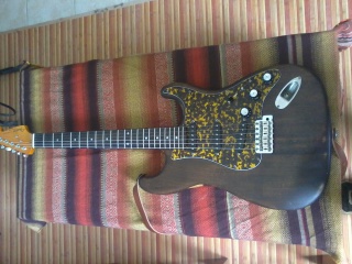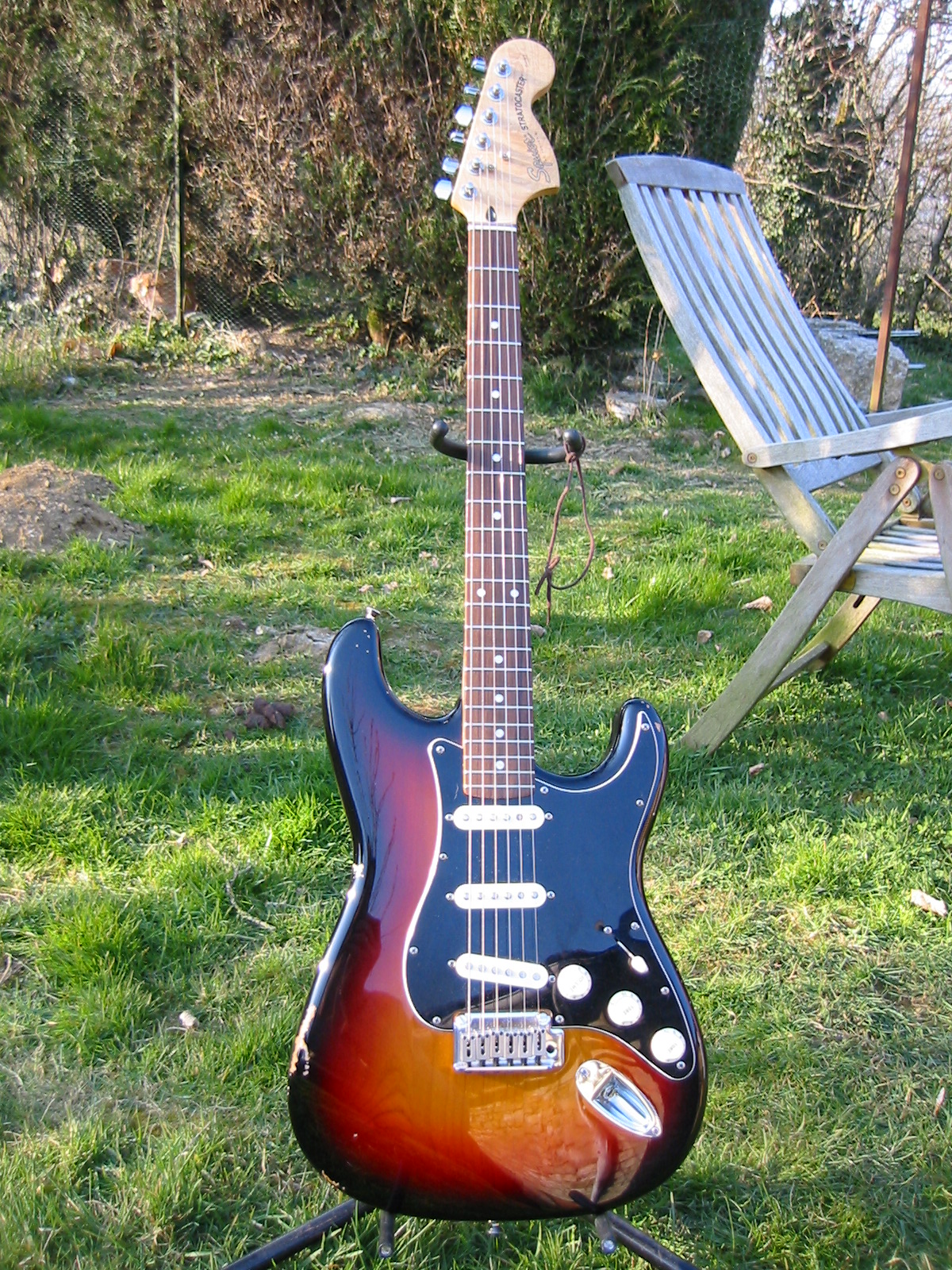 , voici une strato que j'ai montée de A a Z et qui n'est pas une FENDER ( le corps provient de ma vieille FERNANDES des 80' et le manche acheté sur le net et a été fabriqué en CHINE )