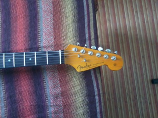 il me semblerait que se soit une copie CHINOISE , ou bien une SQUIER , maquillée en fender , mais en tout cas c'est louche , je craint que tu te soit fait avoir! je te poste des photos de ma SQUIER 20eme anniv ! que j'avais estampillé FENDER ( c'était uniquement pour moi)
