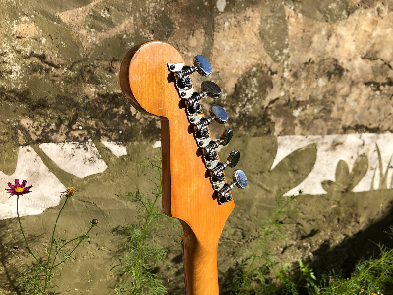 le probleme c'est les mechaniques vintage, ca n'a pas autant de force, donc l'ideale, est de choisir les cordes qui permettent d'avoir assez de tension, ou les mecaniques deviennent fermes a tourner, quand elles sont fermes et que tu es accordes, ca agit comme si la tension des cordes bloques sur les bras des mecaniques les forces a rester en place.