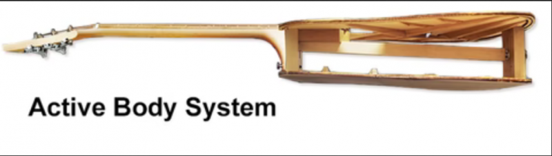 The mass of the neck is now equal in and out of the guitar and it is free to vibrate like a tuning fork helping to ring up and down the neck and throughout the body. With the structure coming from the back of the guitar, the body and the neck has a little bit of flex (like a Strat vs a Les Paul) this flex gives the body the ability to freely vibrate and give the strings a really slinky feel (low tension)