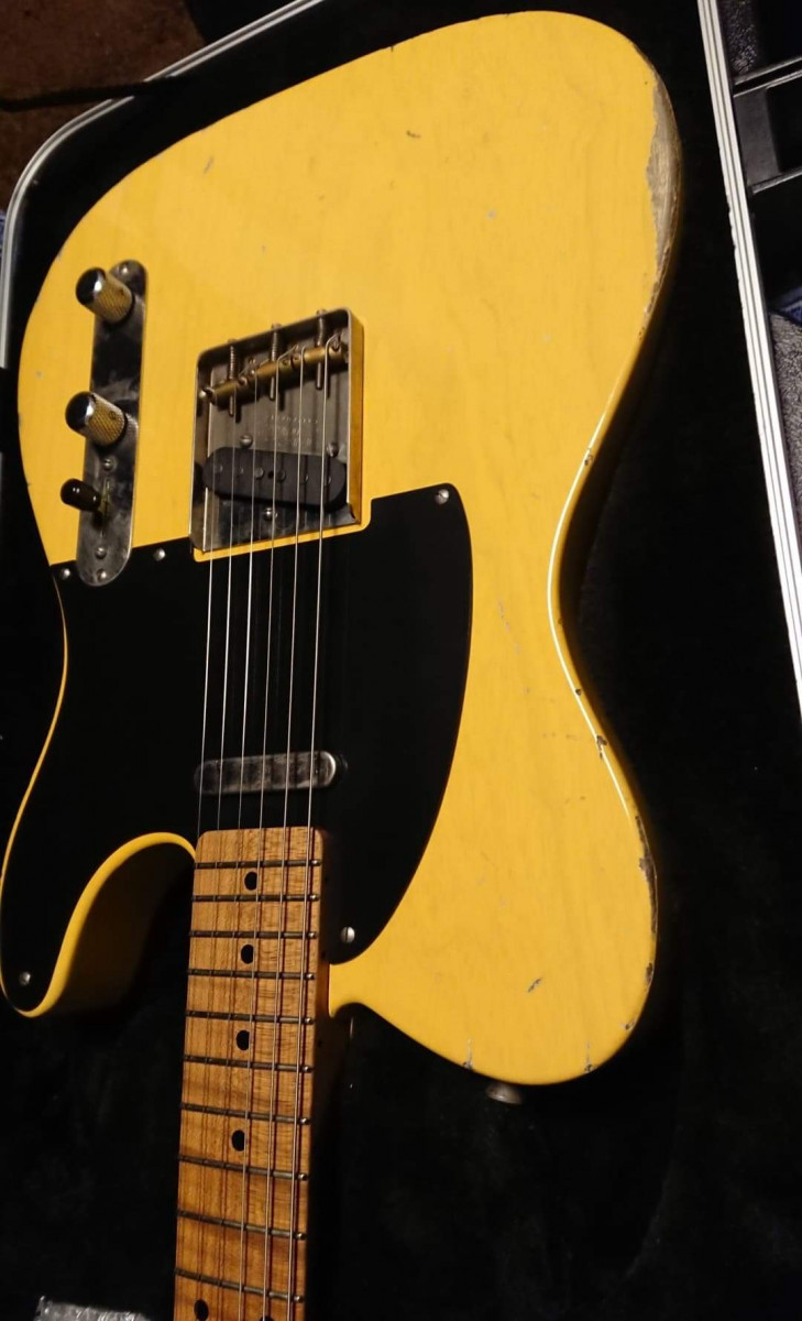 - (ça va te plaire) Une Telecaster Xotic XTC-1 medium relic, type 50s. Corps 1 pièce massive de swamp ash, manche roasted maple touche érable et Gotoh hapm style kluson (le manche et les mecas c'est le seul truc "moderne" sur cette guitare qui se veut très traditionnelle) => 2,3kg